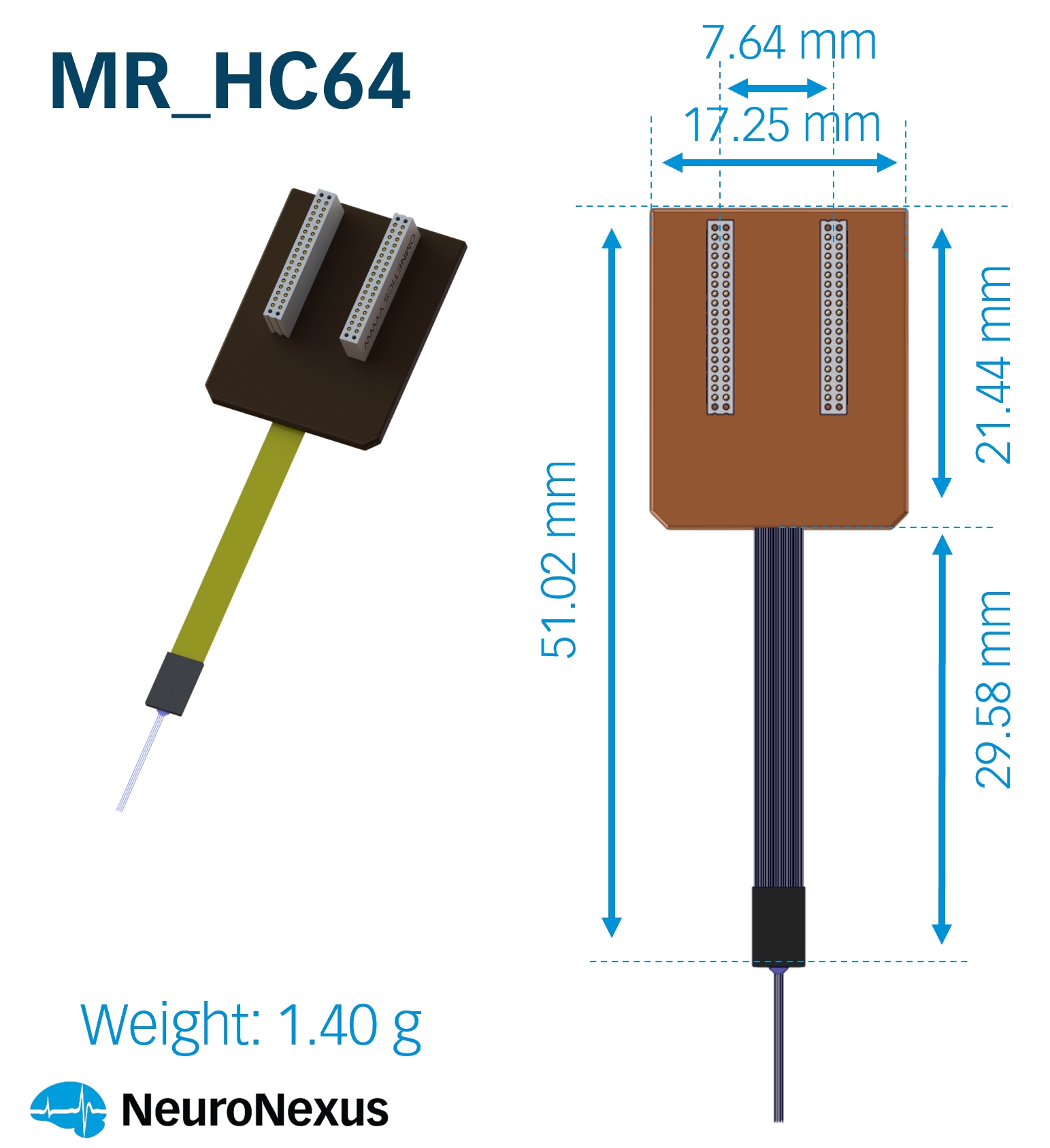 MR_HC64 | 1.40 g | 64 | 30 mm | 2 Omnetics NPD36 (4 guideposts) |